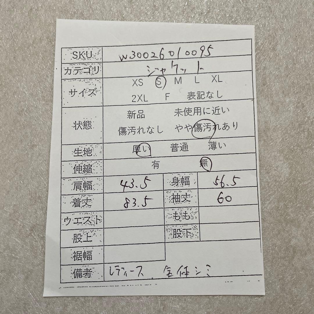 全体的にシミ、汚れがあります(添付写真3.6.7枚目参照)。その他糸のほつれなど古着の使用感もありますので、写真の方をよくご確認ください。 |